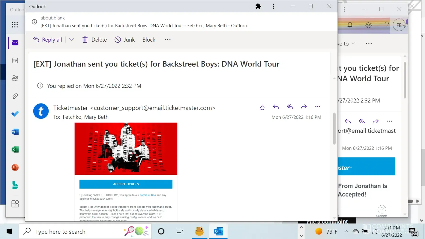 I purchased tickets from Ticketmaster. When I received an email from them, I tried to obtain the tickets by pressing "Accept Tickets" which was contained in the email.