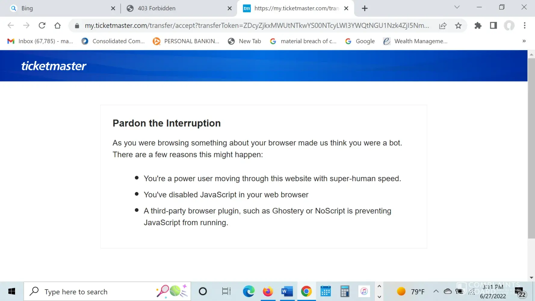 Desired outcome: I would like Ticketmaster to give me some technical support (any support!) in order to access the tickets.
