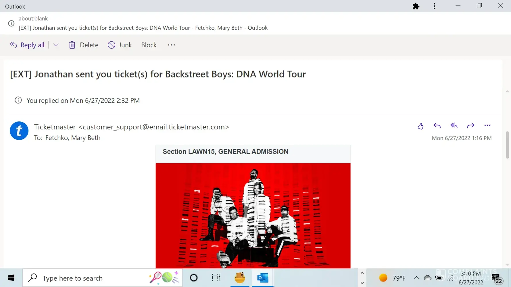 Desired outcome: refund of additional charge and my tickets for June 9th 2022