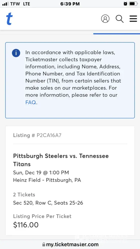 This matter is regarding two (2) NFL tickets that I sold through their website back in September 2021. I have reached out numerous times to find out why I haven't received my money from the sale of these tickets. Last email I received from Customer Support was an email on Nov 19, Thanking me for reaching out about the tickets. It led me to FAQ's concerning the selling of my tickets. There was nothing noted on their website on how to handle issues regarding brokering a transaction, which is what they did. There is no phone number and no one you can speak with over the phone. Keep receiving the same response which doesn't even address my transaction. Please let me know what else I can do. It's about $500. I have also seen many others complain of the same issues
