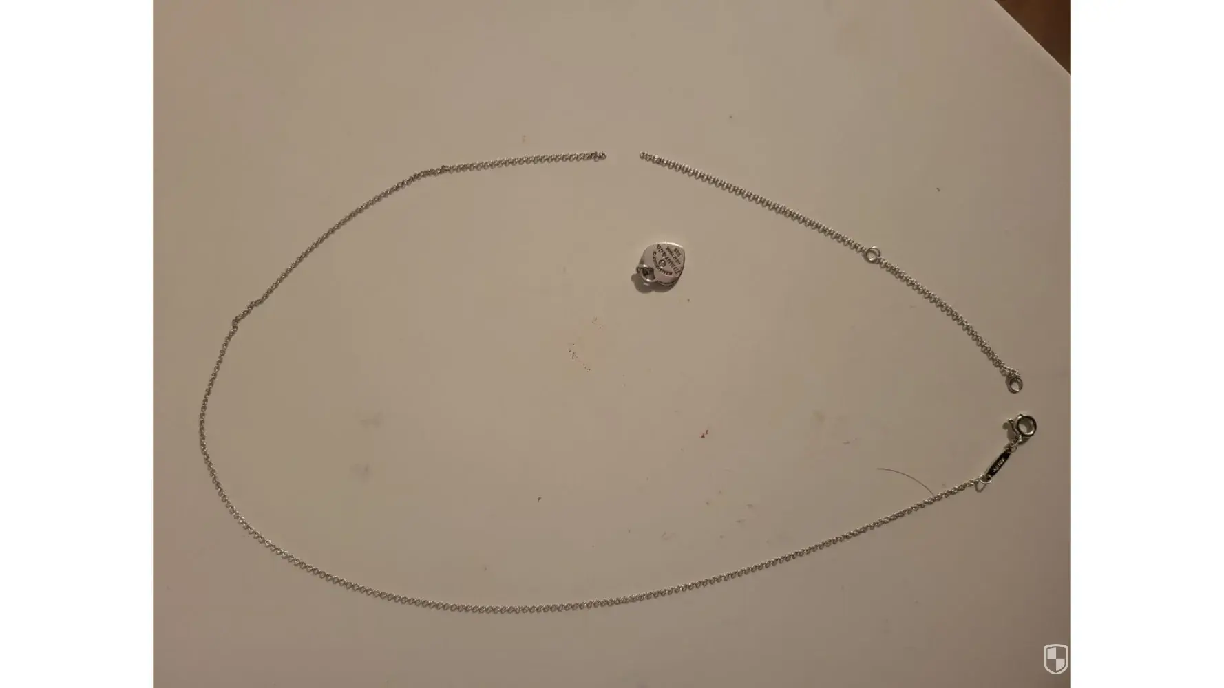 Desired outcome: To have the necklace repaired free of charge and to be given a replacement charm.
