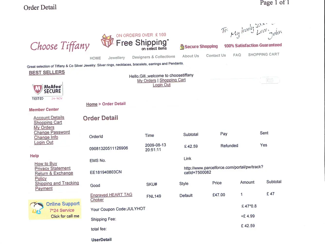 This website calimed their Tiffany items were genuine and purchased from Tiffany Hong Kong distributor with much cheap price. In fact, the products they sale are only cheap tatty replicas. When I found out the products are fake and ask for return, they refuse to refund me with excuse of having no quality problem with products.