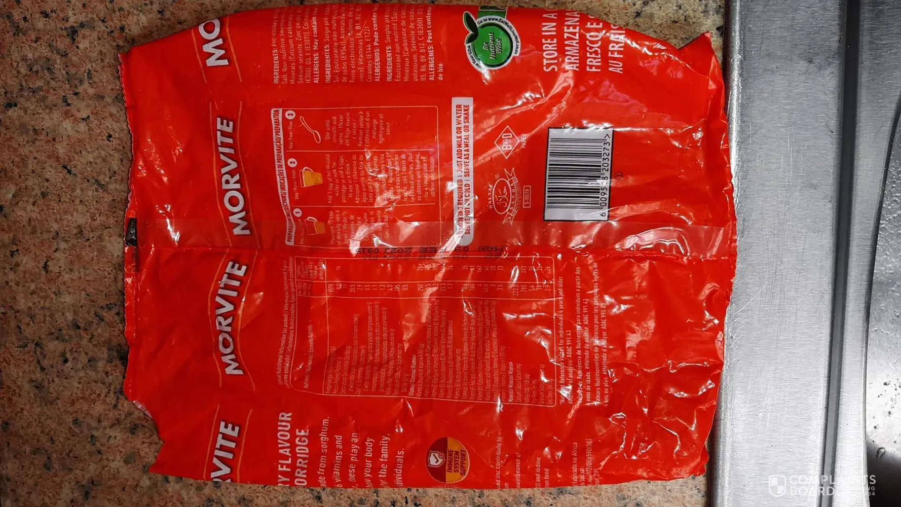I purchased a pack of morvite instant cereal from foodworld/shoprite in goodwood, cape town. This morning I made some of this cereal and to my surprise the bag was invested 3ith maggots! Thisbis absolutely disgusting! Is this what your brand represents?