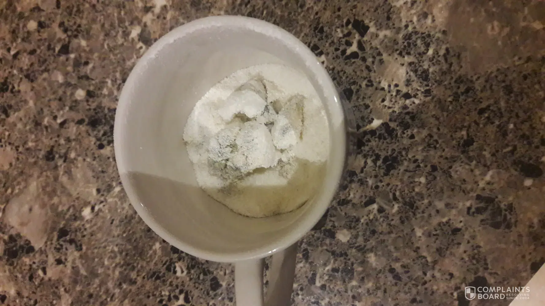 The contents of the packet, the sweets were all stuck together, like glue, with all the sugar dusts on it vanished and it was like kind of hard. It was so odd as I always buy these sweet and I have never encountered this before, so strange. I am not sure whether the problem is with this packet of sweet that I bought or perhaps the whole batch.
