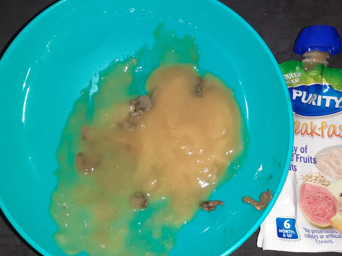 Hi I just purchased a bunch of Squeeze and eat for my baby yesterday. This morning we opend one for breakfast and the color looked strange when I squeezed some in a bowl there where greenish black substance coming out of the pouch as if the food was old. I checked the expiration date on the packaging it states that the contents should have been fine until 29.01.2021. please advise...