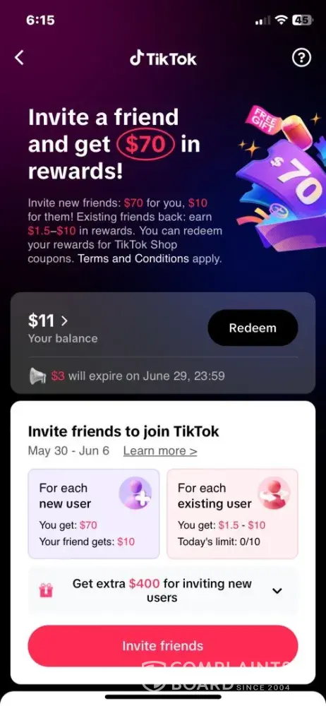 Desired outcome: I just want TikTok to give me my $930 for The TikTok Purple Ticket Rewards Program.