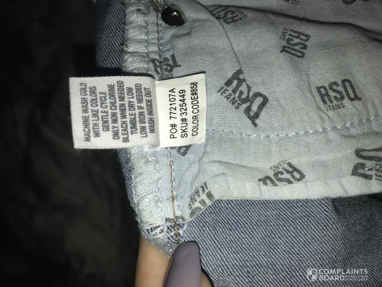 On 10/17/2018 I purchased a pair of RSQ W Manhattan High Rise Jeans. They seemed comfortable and of correct size. In good condition when purchased I had worn the jeans twice, upon third wear (10/24/18) i put them on myself and noticed a very worn out hole forming in the area of the crotch. This is where I am having the issue. Within 7 days of having the jeans and only two complete wears of these jeans they have already fallen apart. Spending $42.39 on a single pair of jeans that are of such poor quality they fall apart after only have had them for a week is unacceptable. This product quality is not worth the money i have spent on it. I am a loyal customer and supporter of Tilly's and their products until this point. I hope this helps your company to resolve product quality problems from this point forward. To resolve this problem I would like to receive a replacement pair of jeans as i am unable to wear the damaged pair at this time.