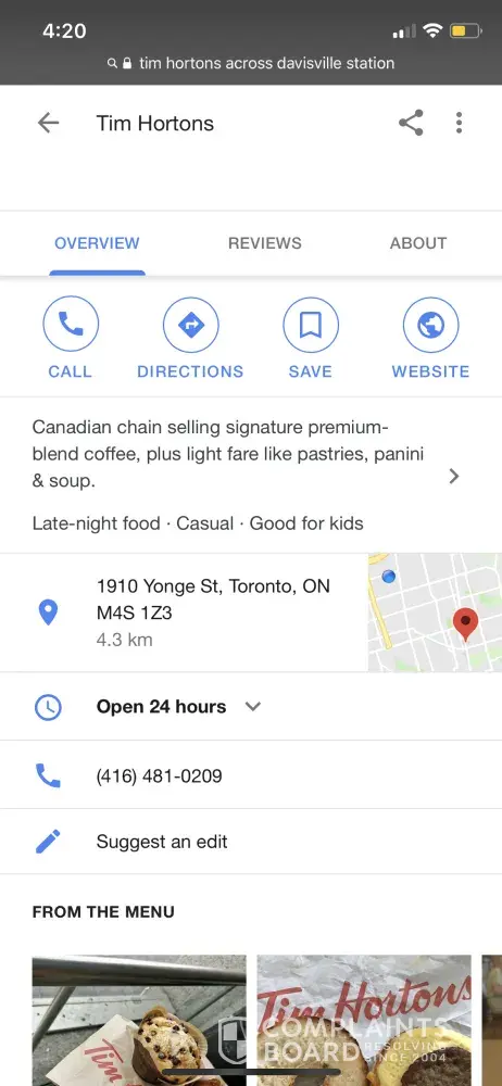 Problem was reported to the owner of Tim Hortons at that location by phone and by leaving voice message. No response yet received.