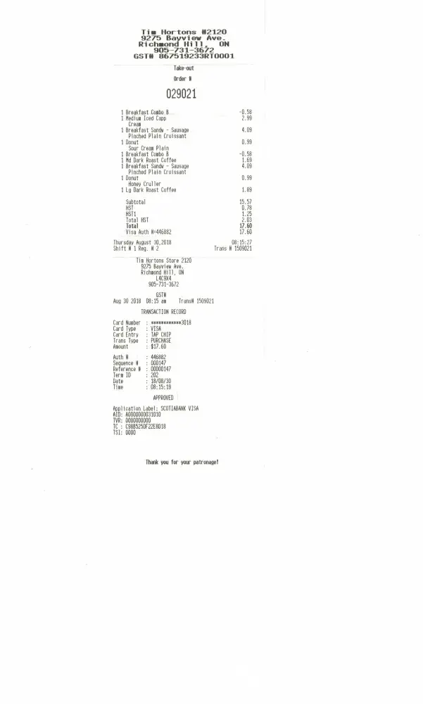 I had QR Scan Coupon from CIBC double Double Tim card..
