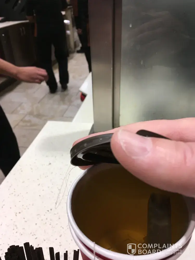 she bought 3 drinks one of them had a hair in it ( camomile Tea )
