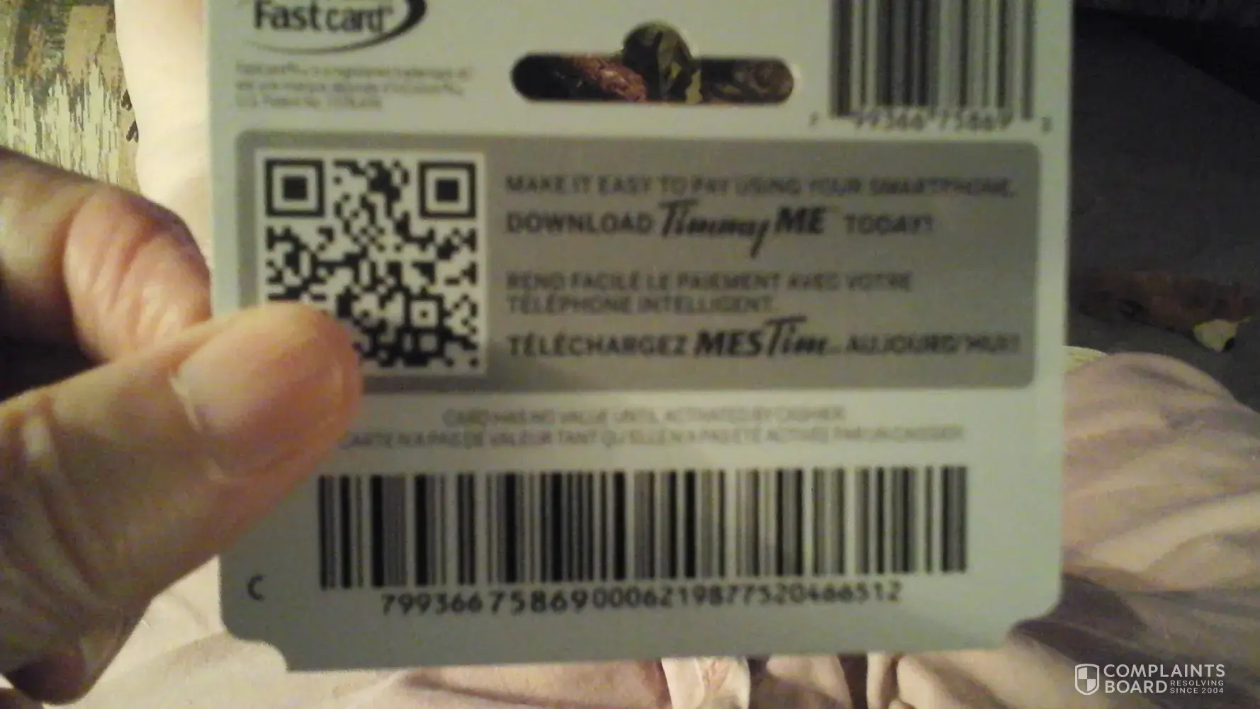 Received 2 fastcards for Christmas. Unfortunately, by mistake, I was given the top portion of the card and the bottom part was tossed out. When I called Tim Horton's customer service, I was told there was nothing to be done about the mistake because the cards were sold by a third party like Walmart, Costco, and such. I cannot believe that a corporation like Tim Horton cannot put a safeguard in place in order to ensure consumers are not the ones "losing out" when mistakes are made.