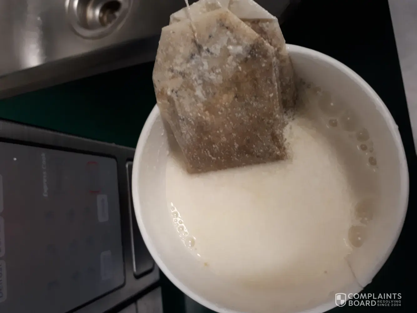 It was early morning On Sunday when I was going on the drive through at Tim Horton and I ordered larger cup of tea three S and two cream by drive through, then I came and pick it up. I didn't check it what employees did for my order after that when I got my work and I tried to drinking my tea oh [censor] big wrong and very bad service.