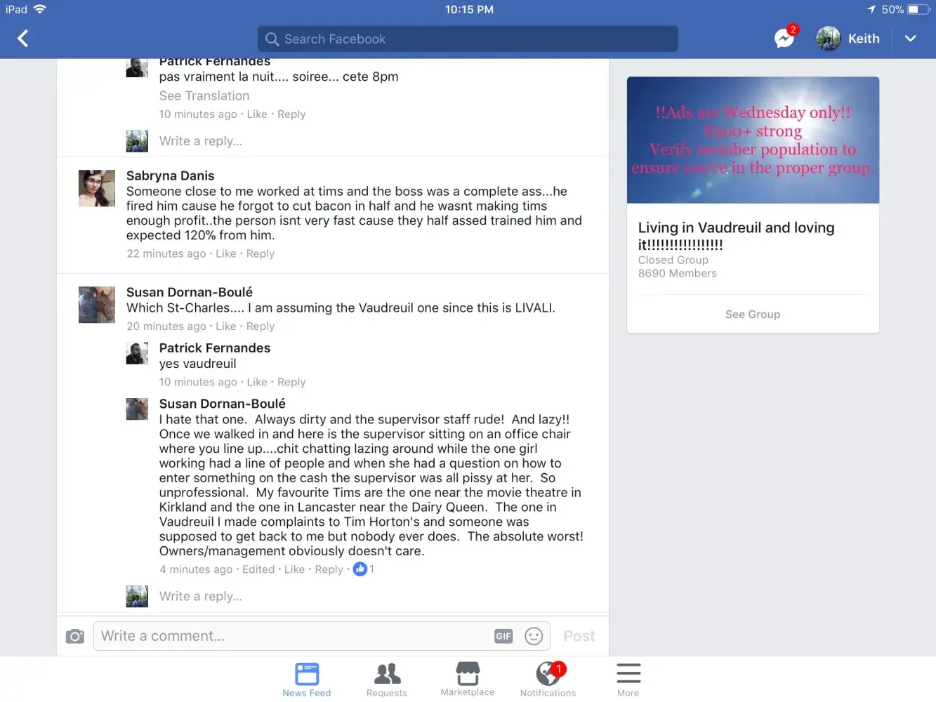 This happend at the Napanee On Route location, but it has happend to me several times in the past, at various Tim's. I'm at the front of the line and people manning the tills/taking orders are having a conversation about there lives outside of work, it takes a minute for the cashier to realize I'm standing there, I submit my order of a large reg coffee, a honey cruller and a Farmer's sausage wrap. She recites it back to me correctly, after I get on the road I realize they gave me just a plain sausage egg wrap, without the farmer's sauce or the hash brown, it was still good but not what I had ordered even though the lady recited it back to me, so I paid extra for something I didn't receive, which may have been lost in translation between her and her friend about the party they went to or what not, I'm not sure . But the cashier personally got my doughnut, who recited it back as a honey cruller.. But again on the road I discovered it was a honey dip, which I'm not a fan of. I love Tim Horton's, the food is great 90% of the time, I rarely have complaints about the locations, or the food... But service is sometimes not taken seriously by the staff... I'm not saying that's the case all the time, some locations are amazing but obviously it's happened enough times that I've decided to take time out of my day to write this dumb message to you so you know that service isn't where it should be... And you probably already know that and are trying to get a handle on it anyway, so I won't waste anymore of your time, but thanks for reading. Phil