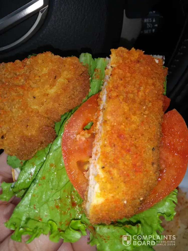 I picked my order and on my way to Barrie I started eating my lunch and I took one bite to taste how hot the chicken was.