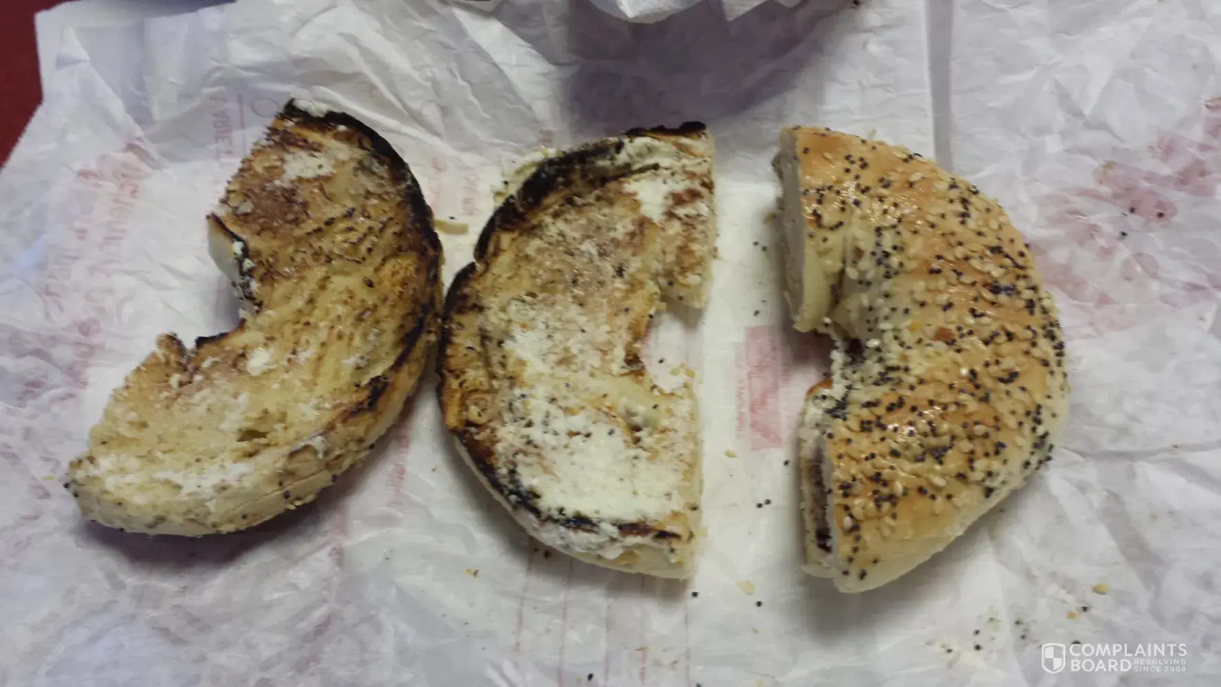 I was at the Tim Hortons on Hwy 89 and Hwy 124 in Shelbourne Ontario and ordered an everything bagel with butter and cream cheese. There was barely a hint of cream cheese and when I went back to the counter I was ordered a replacement. I was belittled by one of the male servers who suggested that next time when I order I should ask for double cream cheese... really? I am sending a pic of the original bagel I received. What bothers me the most is the servers attitude and disrespect.