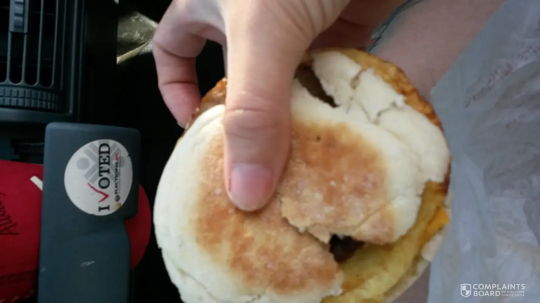 I ordered breakfast as I do any morning and I was so put off when I took my food out to eat it.I know speed in the drive through is a given but when it's not even toasted and looks like the pics I've sent I've been drinking tims since I was 11 years old.I've never had food that came out looking like someone ate it before me.I have tims ever morning before work and still do but this was just not right