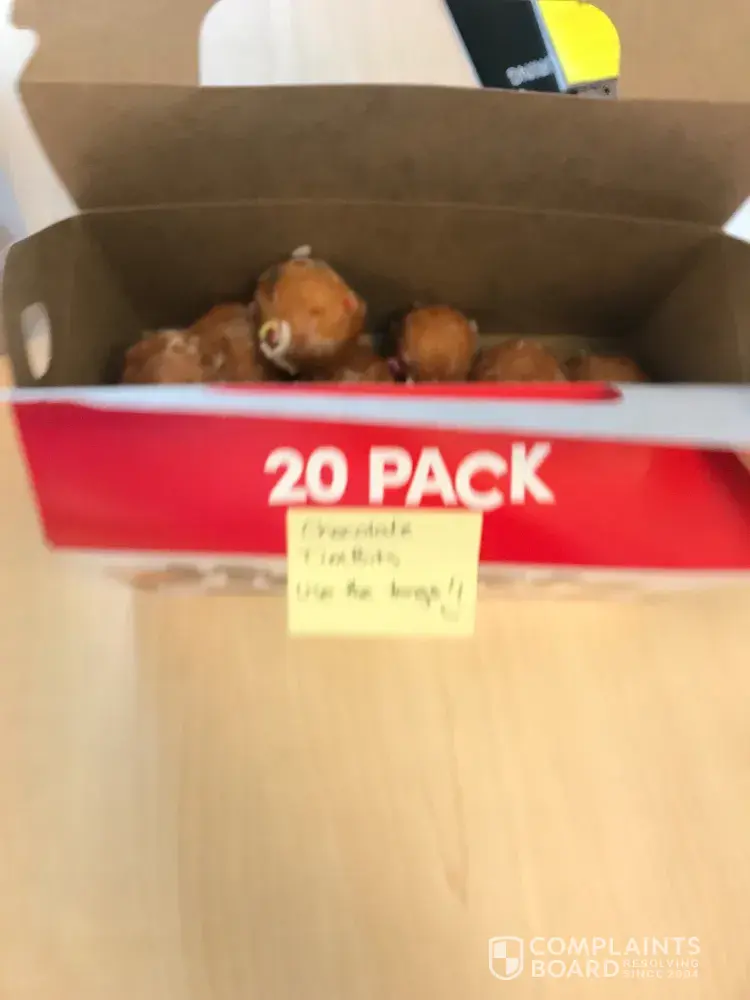 Hello, this morning I visited the West Saanich Rd location and bought a 20-pack of TimBits for my coworkers and I requested that they be all chocolate. When I opened the box once I got to work, I noticed that there were no chocolate TimBits at all. I saw on the cash register display that the word "chocolate" was typed in and there were plenty of chocolate...