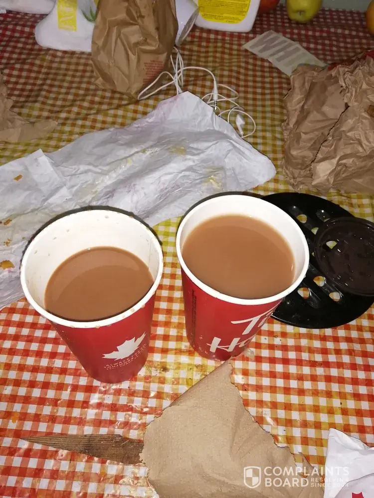 Today, my boyfriend bought for us two large hot chocolates one of them was full of water, not tasty at all, while the other one was normal. It's the first time we have this problem with Tim Hortons. I didn't expect them to put water just to make the product larger and cheaper.