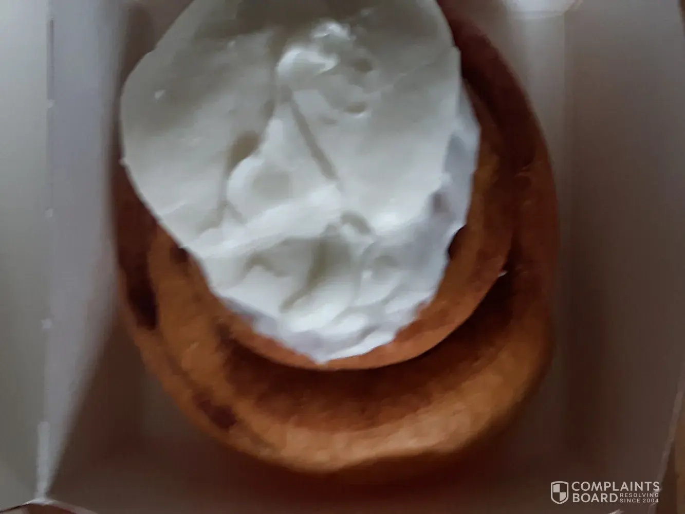 This morning I went through the drive to get a coffee and a cinnamon roll as I do most days. I was unpleasantly surprise to open the box and find a very disappointing looking cinnamon roll. The icing was blobed on the very hard to unroll cinnamon roll. If I knew I was going to get this cinnamon roll, I would have made my own at home. I visit my Tim Hortons 3-4 times a day to get a coffee, and it seems that the quality is going downhill. (Would love to see the old lids back at Tim's)