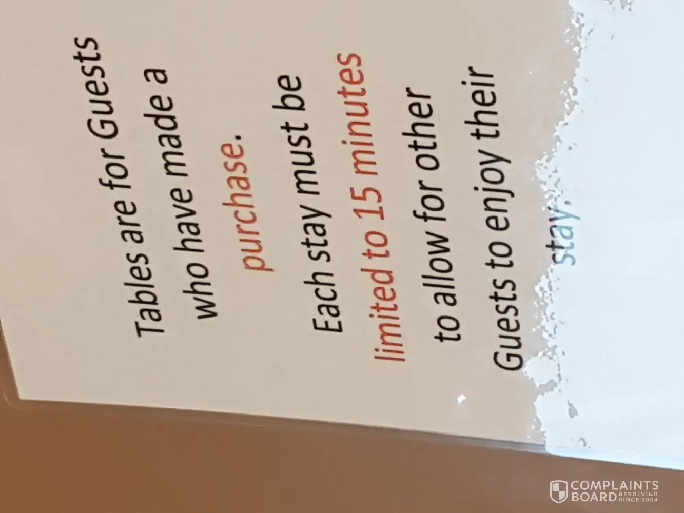 I understand that loitering in a place when busy is not being very respectful to others that are trying to sit down and eat, but this sign is very ignorant and disrespectful for those that buy something and want to sit down and enjoy there food or coffee and not use the drive through, not being timed...