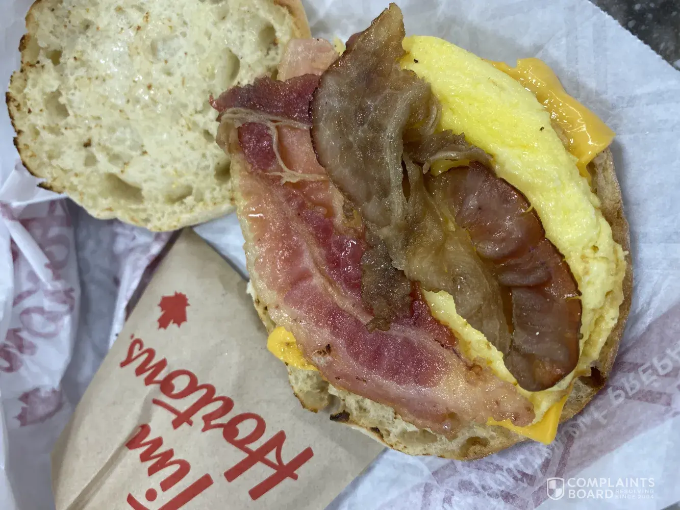 Hello . I wrote customer service re:a breakfast sandwich that was purchased oct 10 at the airport terminal 3 at approx 6am . We just took everything close to the boarding waiting area as it was close to boarding time so I didn't have time to take it back. But I did hear from Tim Hortons and I'm not accepting a standard letter response! I'll send u the pic and you tell me you'd eat it? I lost my appetite and didn't eat it all and I was hoping at the least for my money back . Obviously I'm too far away but even to send a gift card would've been a great suggestion? Thanks for listening to me . Lorie