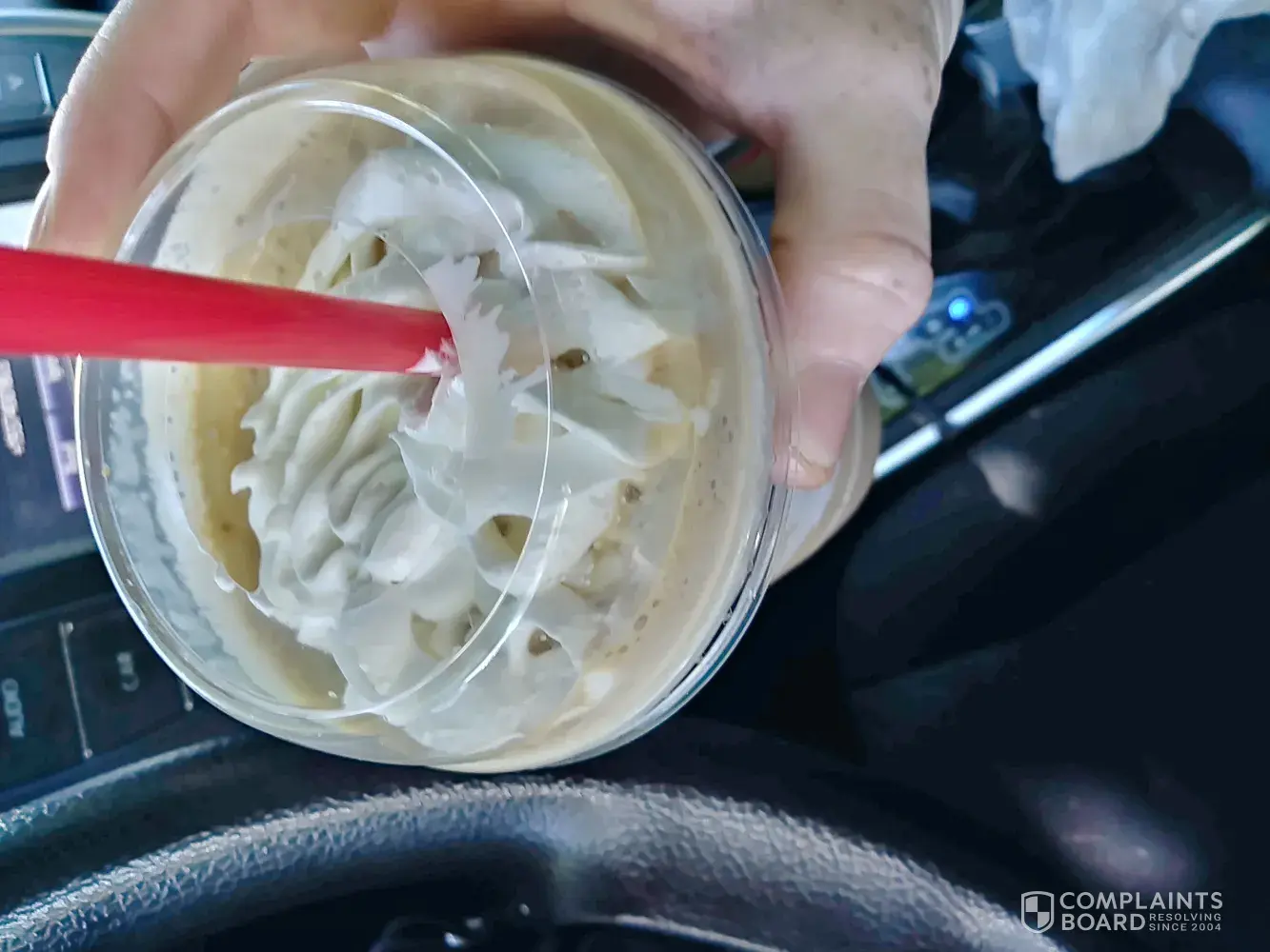 I excitrdly waoted in line to order what looked to be a delicious drink what I got was nothing like the photo at all I was very disappointed in both appearance and taste of product! My family and I like to go to Time Horton's often however we will think twice before visiting this location again! I have included photos of what we ordered and paid for versus what we received