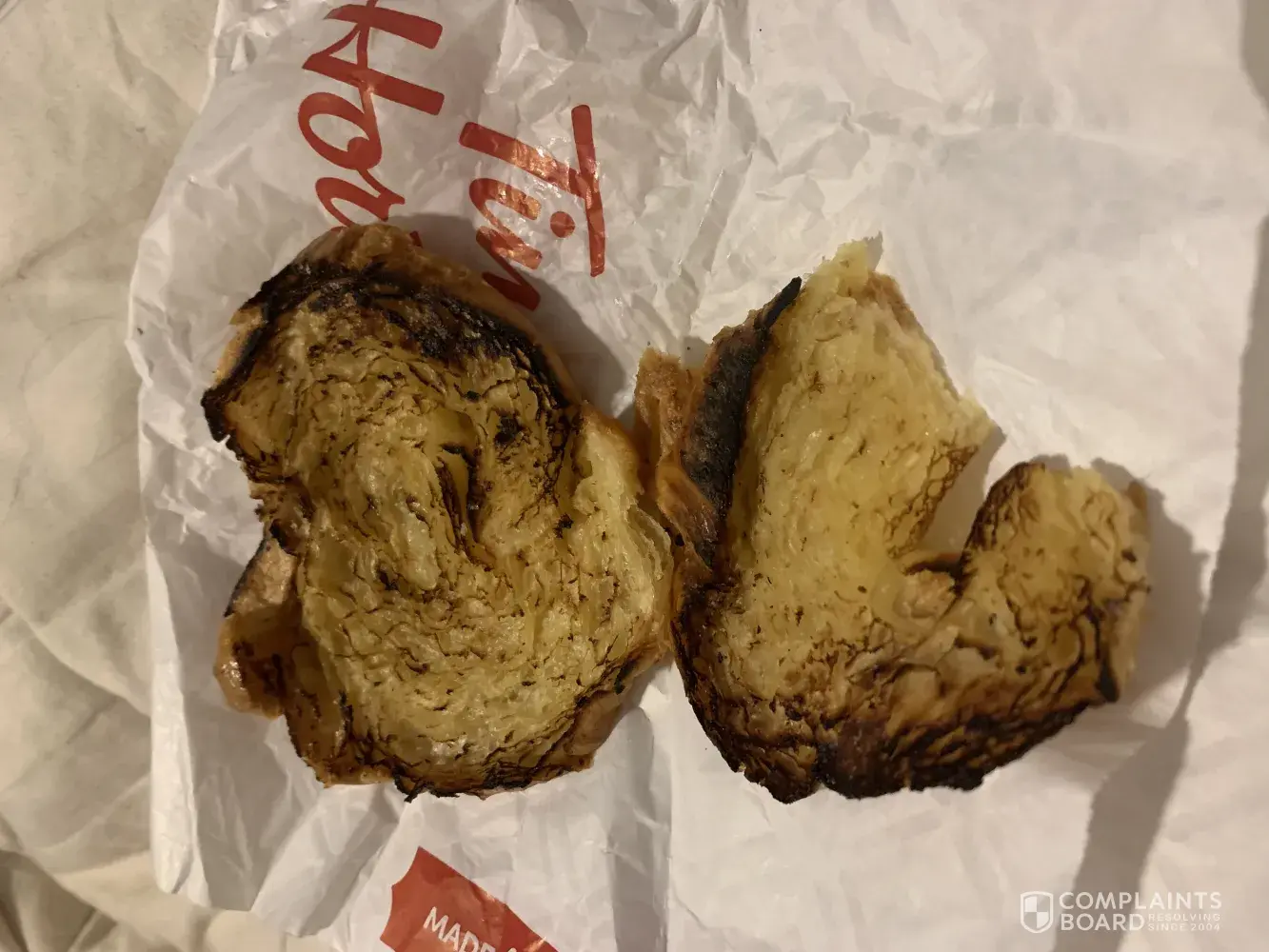 Honestly tell me who cuts open a croissant and toasts it black? Tim hortons in blenheim does when you ask for a warmed up croissant! Disgusting! Not to mention they argue you over your order, insisting you didn't order items when they've made the screw up and ignorant staff who tell you to speak up and when you do, they get defensive and tell you not to yell at them! Horrible customer service, especially on the weekends!