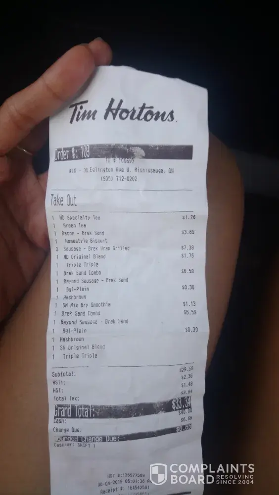 At first I thought I got someone else's order because instead of what is written in tge receipt they serve sausage and egg in a cinnamon bagel, plain bagel with breakfast sausage and a plant-based sausage in a bagel. Only one out of 3 is correct and 2 hash browns were missing.(GOOD THING WE CHECKED OUR ODER BEFORE LEAVING THE STORE)