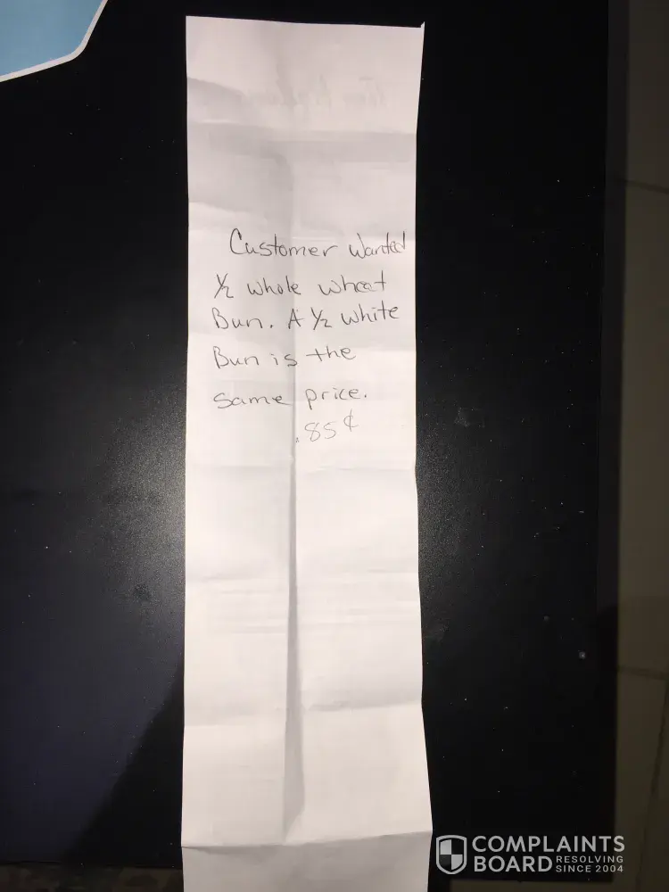 On June 24 at 20 Queen St North, Bolton, Ontario, L7E 1C8 location at 9.09 am, I went to get my regular breakfast for which I ordered half whole wheat bun for which they charged me white bun price. I asked why are you charging me for white bun as it is expensive than employee said that both- white & whole wheat bun price is same & also they gave me in written on back of my receipt whereas I know whole wheat bun is cheaper than white bun as I eat it everyday. But they didn't listen to me . My receipt number for that order is #[protected]. So please check & let me know why price is different in Tim Hortons . Thanks