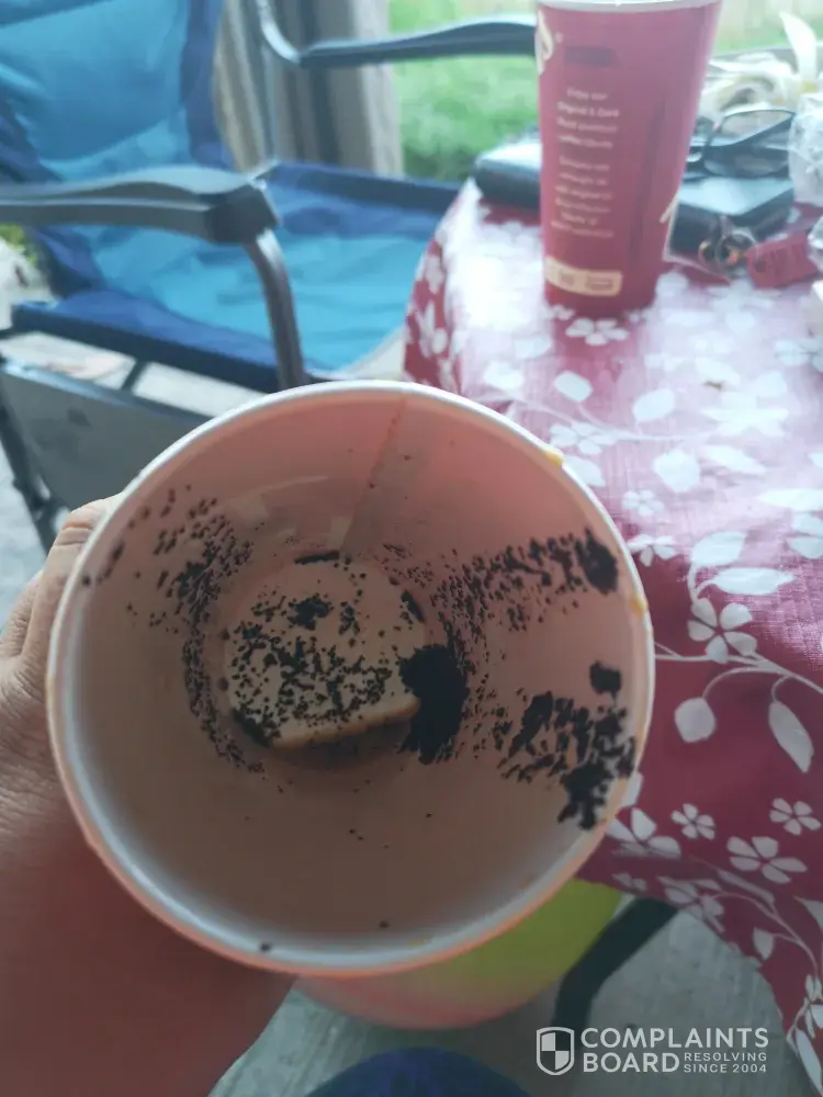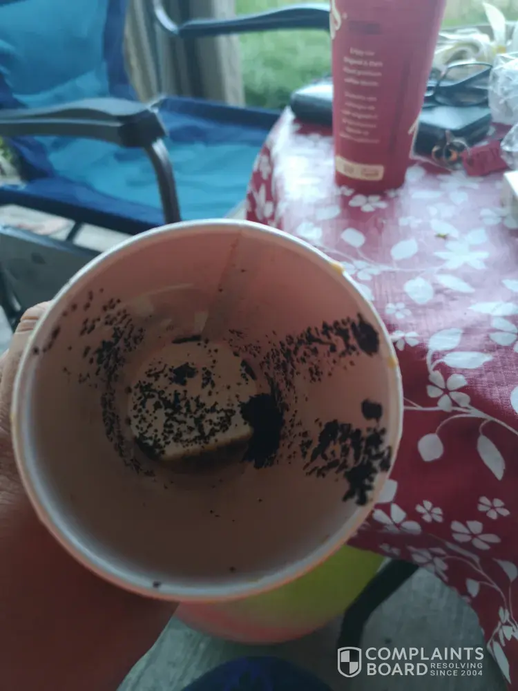 I went to the tim Hortons drive-thru on upper Wentworth by limeridge mall around 755 in Hamilton I ordered three large triple triples all three are full of coffee grounds after finding out with the first coffee I poured the other coffees into other cups and they are just as bad I will be submitting photos and I'd like to be compensated this is disgusting to get a mouthful of this my phone number is [protected] I feel there should be some compensation for my troubles