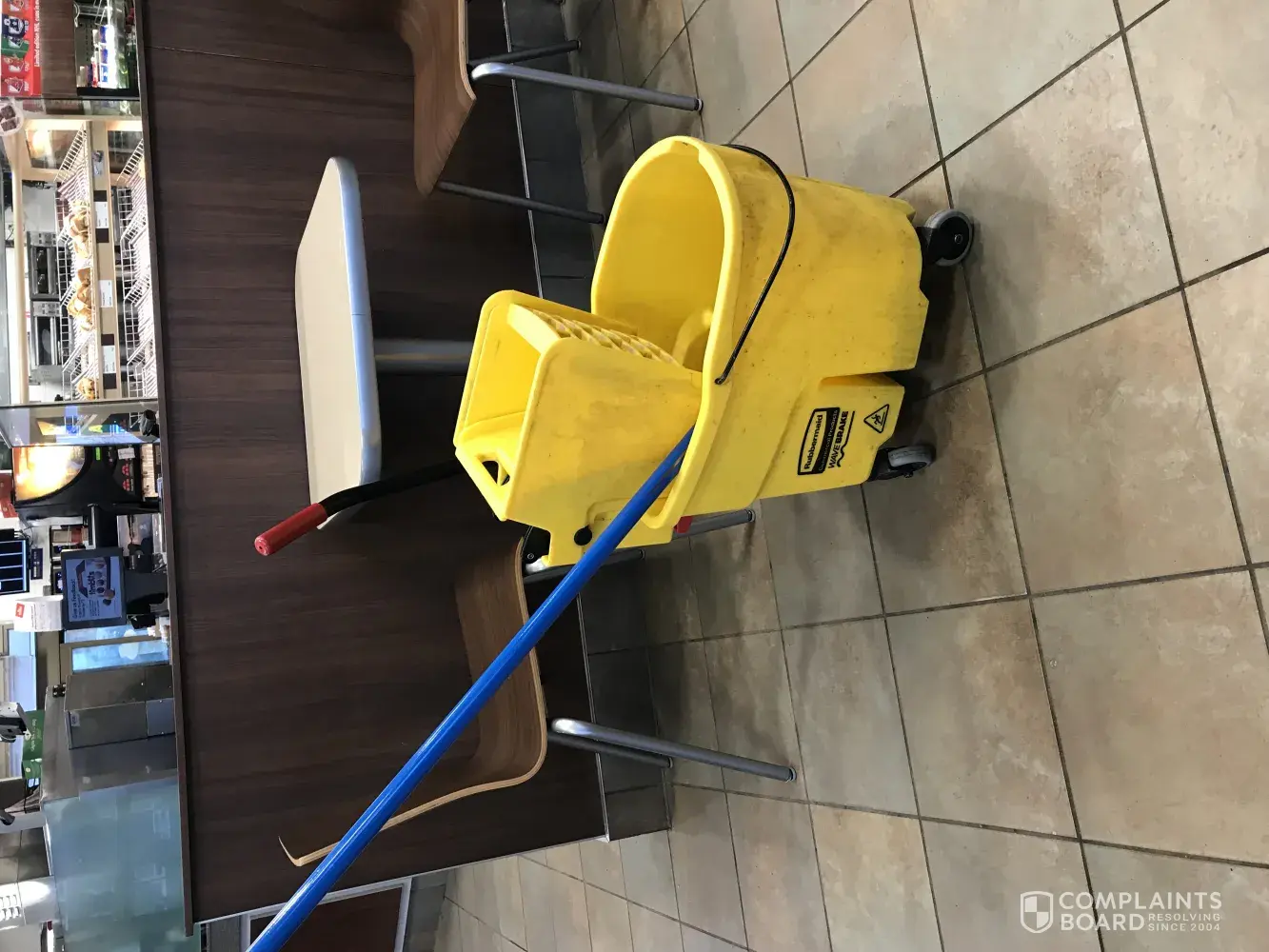 I am currently sitting at this location and for an hour and a half there was a dirty mop bucket in the isle, a broom and dust pan in the door way to the bath rooms and they closed half the sitting area 2 1/2 hours early. Employee complaint of being treated badly and all staff want to go on strike. This employee is saying that all staff is about to quit...