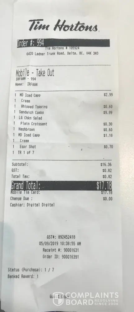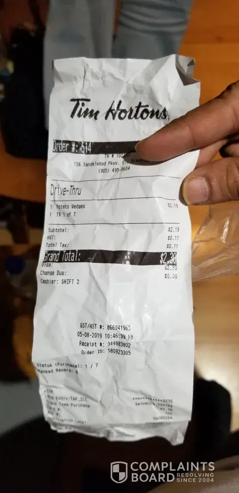 Hi. My name is Ronak.today i went ot 156 sandalewood parkway, brampton, ontario, canada tim hortons location .my order ID is : [protected].time was 10 :46:39 pm.I placed the order of potato wedges from drive through.i was served stale wedges.also the lady who was handing it to me was a punjabi lady i guesss.she asked me about my cast and religion in very much insulting and humiliating way twice just because i ask for reward card.so i think ther service must be improved ...and this is my third time worst experience .so i am expecting a gift card in order to cover it up.you can reach me on [protected] or email : [protected]@yahoo.com