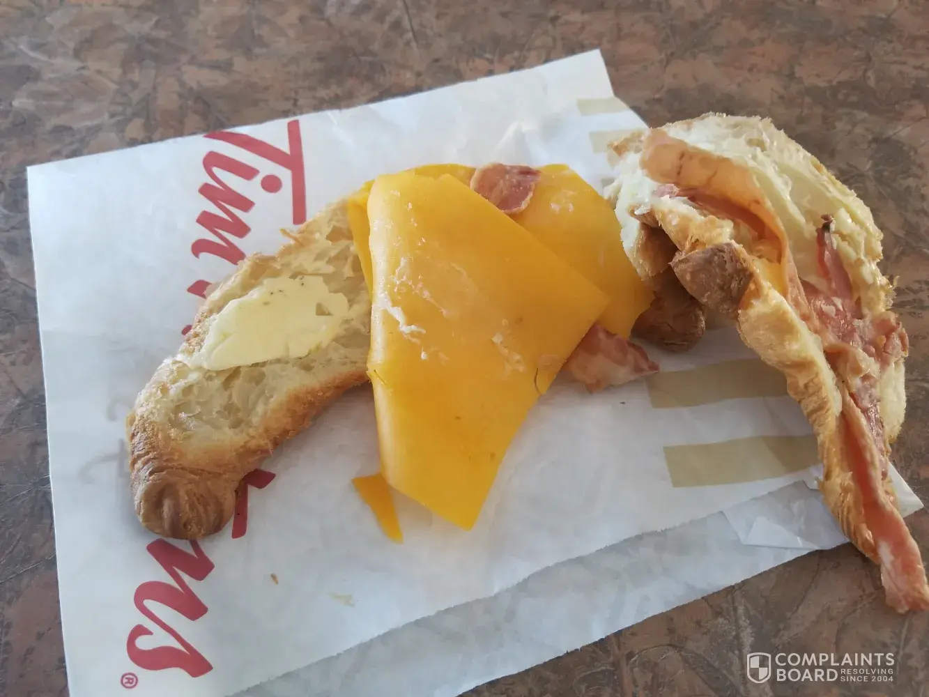 As I did not have time to run back to the store I ate what I had as my break was ending. I then went and lodged a complaint on the Timmies website.