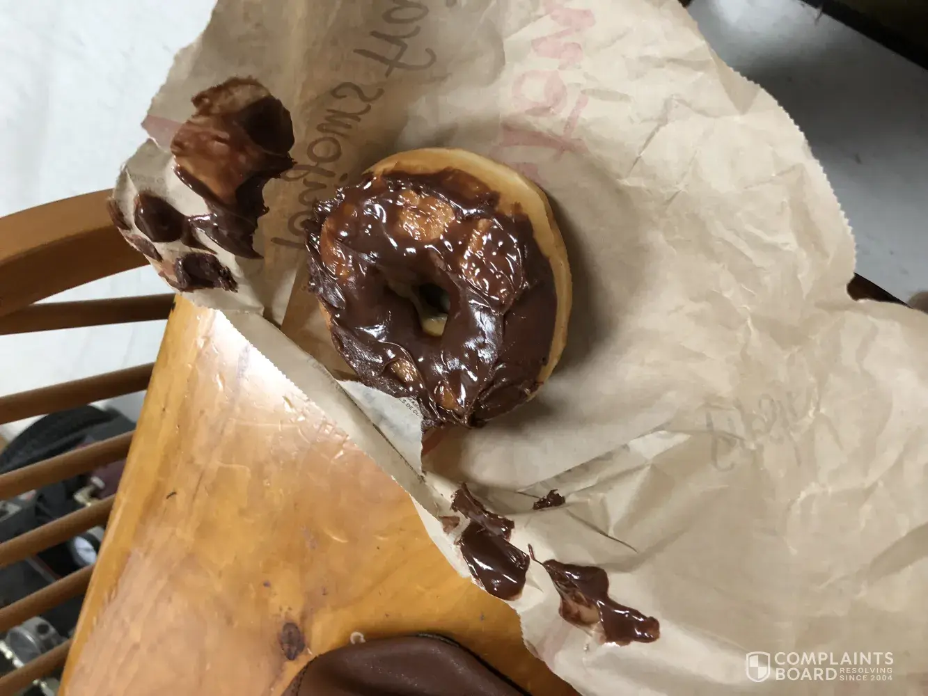 This is not okay. Why am I paying for something that looks like this? The product is eaten right away, does not sit in the bag very long. This is basically almost every donut I pay for now. This needs to be addressed!
