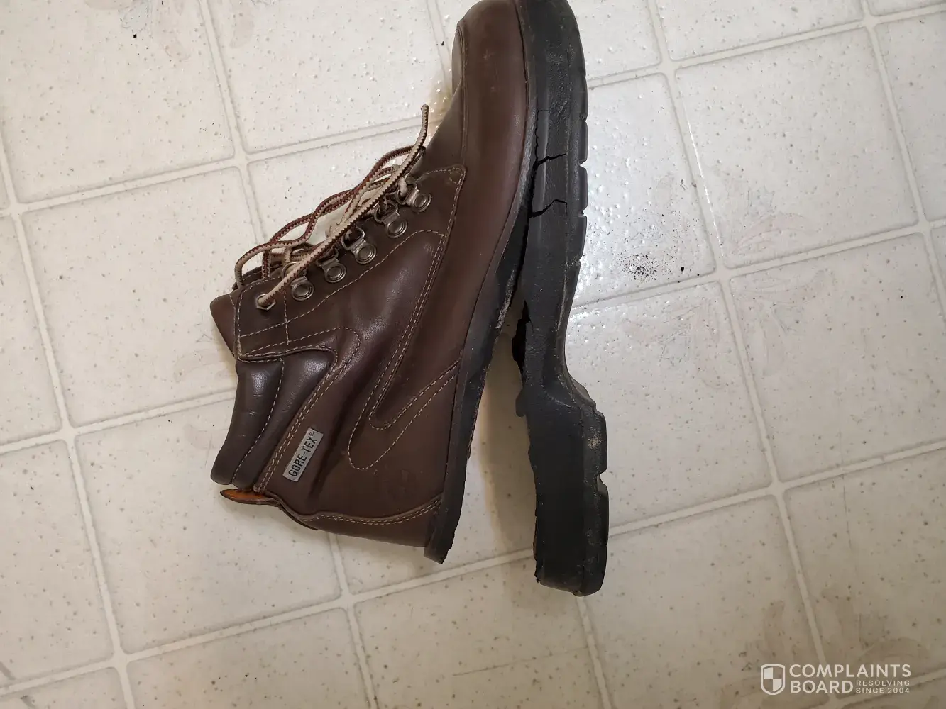 However there is a foam layer glued between the outer soles and leather bottom of the main shoe. This has disintegrated into pieces and both soles have fallen off the boot.