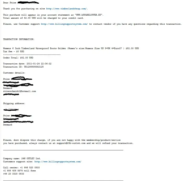 I ordered a pair of Timberland boots for the cost of $82, and the next day I got a mail saying that the shipping fee was $20 when send to Denmark. I paid for both the boots and the shipping fee. And now the site is closed and my money is gone... Does any one know if I somhow can get my money back, it a lot of money.