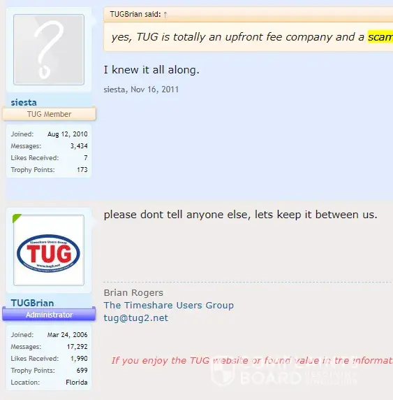Timeshare Users Group / TUG2.com Brian Rogers hosts a scam website tug2.net