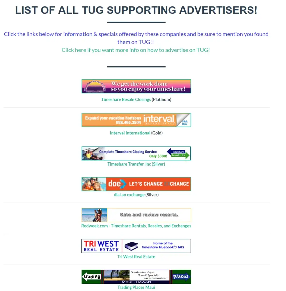 I signed up on the Timeshare Users Group (TUG2) at the beginning of June 2019, and it all seemed to be OK for me, and I even paid for ads in the Timeshare Market.