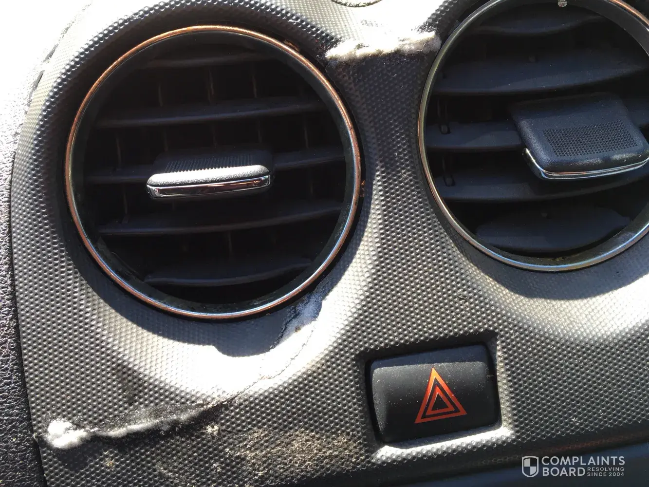 I observed that the front air bag icon was blinking in driving, and also, I observed glue on the dash panel and two cracks on the right side of it.