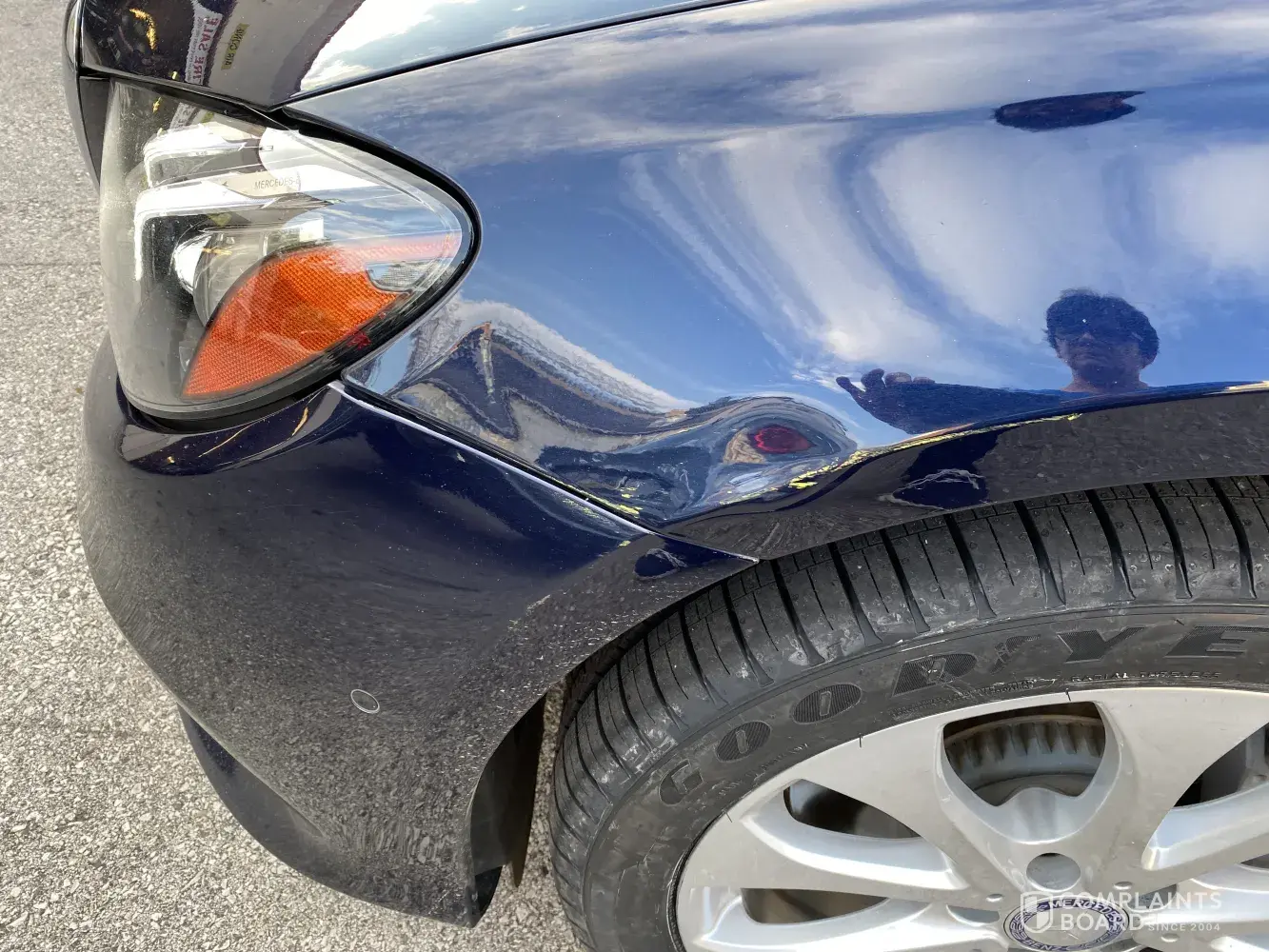 I purchase two front tires for my car at the Bryn Mawr service center in PA. When I picked up my car there was a dent and fresh yellow paint by the dent (see attached photo). I pointed this out to the manager and she said that she would submit an incident report.
