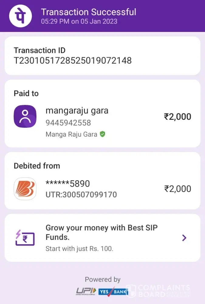 Transaction ID: [protected] (as per my bank statement)
