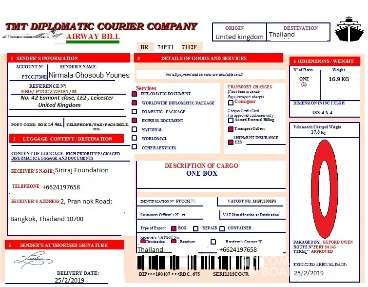 I also received a message from this person through LinkedIn. They used the same pattern and same courier bill but edit information. Belows are their mail.