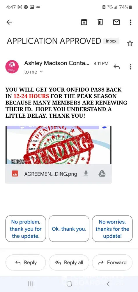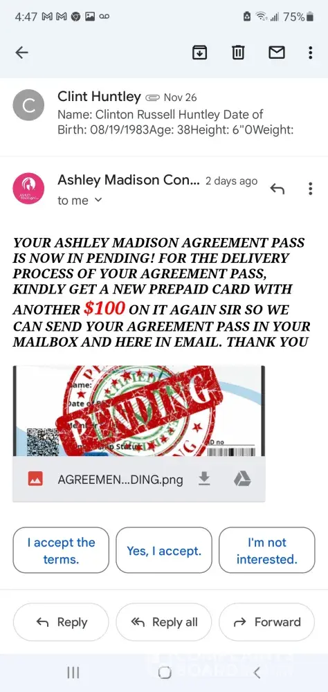 Yes my name is Clinton and I have been in touch with a member and I have paid $100 at first. Then I got an email saying I was approved but I needed to send another $100 for delivery. I was told by the member that if I was to send the other $100 we would be able to meet. I paid $200 cause she stated she needed a extra $100 for a backup payment. I received another email saying that it's peak season and my id will be delivered in 12 to 24 hrs. I believe this is a scam. The female members name is Iva Allen age 23. Hopefully I am wrong.