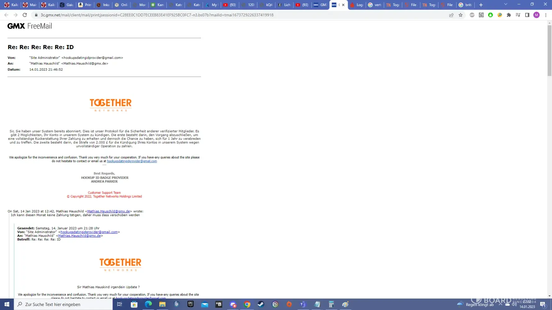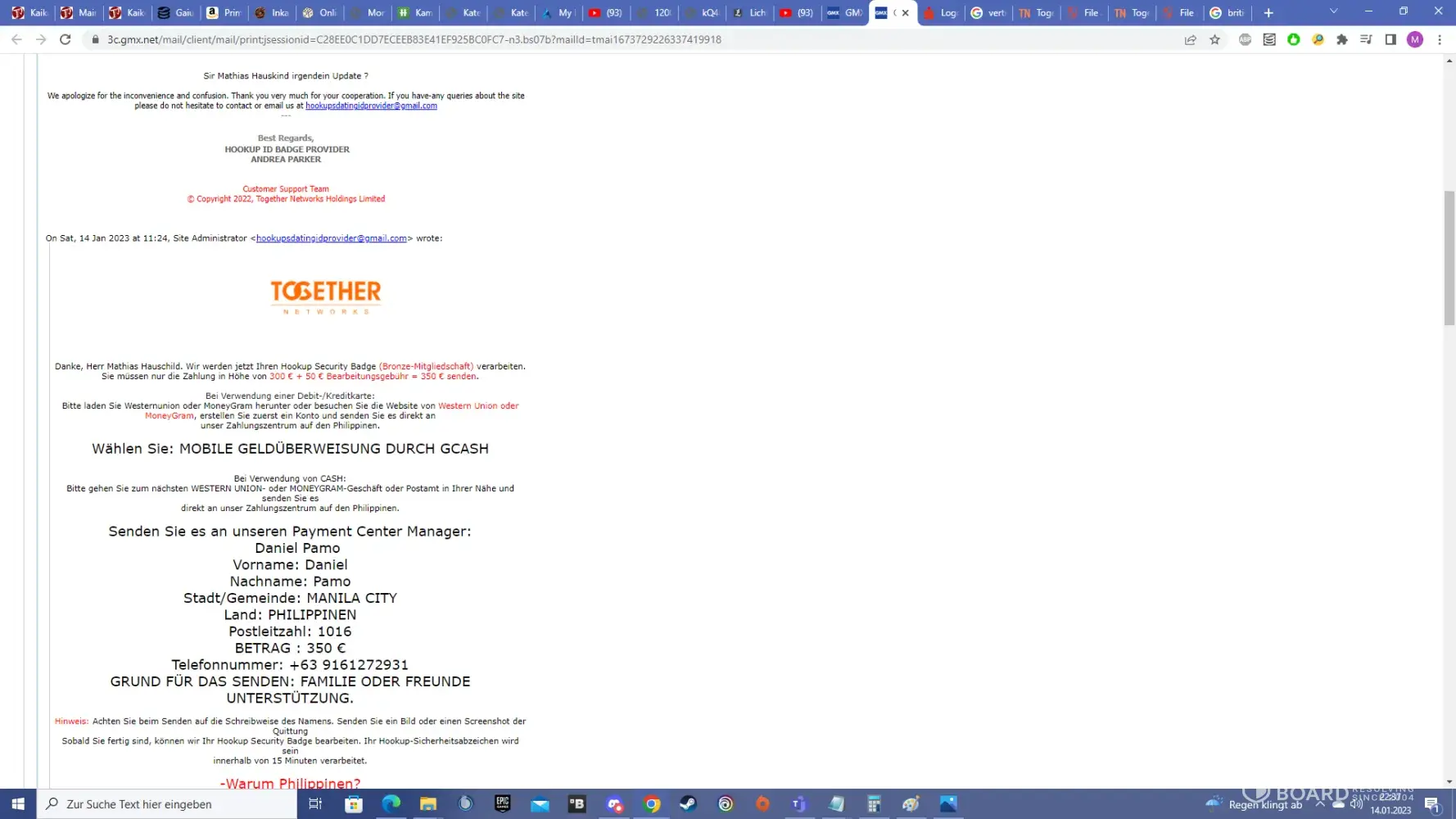 As you can see the English is bad so not very professional at all and it was addressed not only to me but to over 50 other email addresses so I think this is a scam and I never used that service before.
