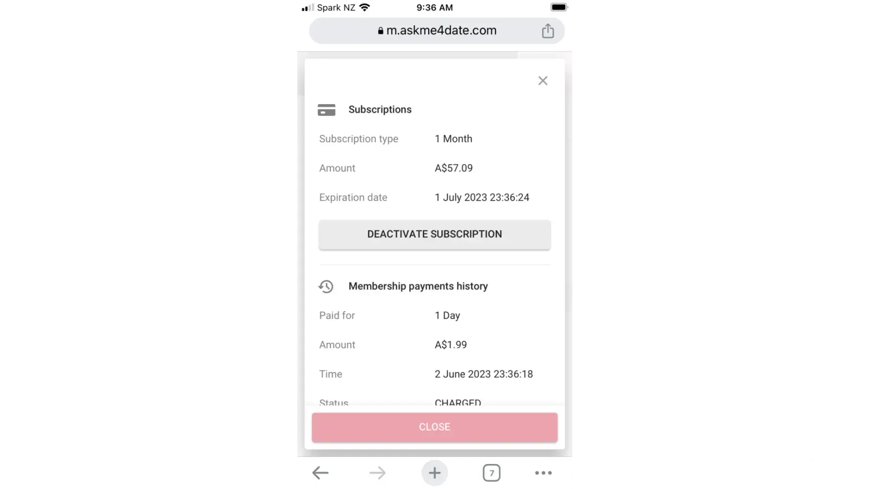 I subscribed for a 1-day subscription to askme4date.com on June 2nd, 2023. I immediately went into the settings to cancel the auto renewal, I followed all instructions to cancel my subscription with askme4date.com but my bank was still deducted a monthly subscription amount the next day. All my attempts to contact the company via any of their email addresses results in the emails bouncing back. The company address is fictitious; Office 1, 1 General Street, General City, 1111, General Country. I have reported this company to my bank and have cancelled my visa card, do the right thing and refund my money please.
