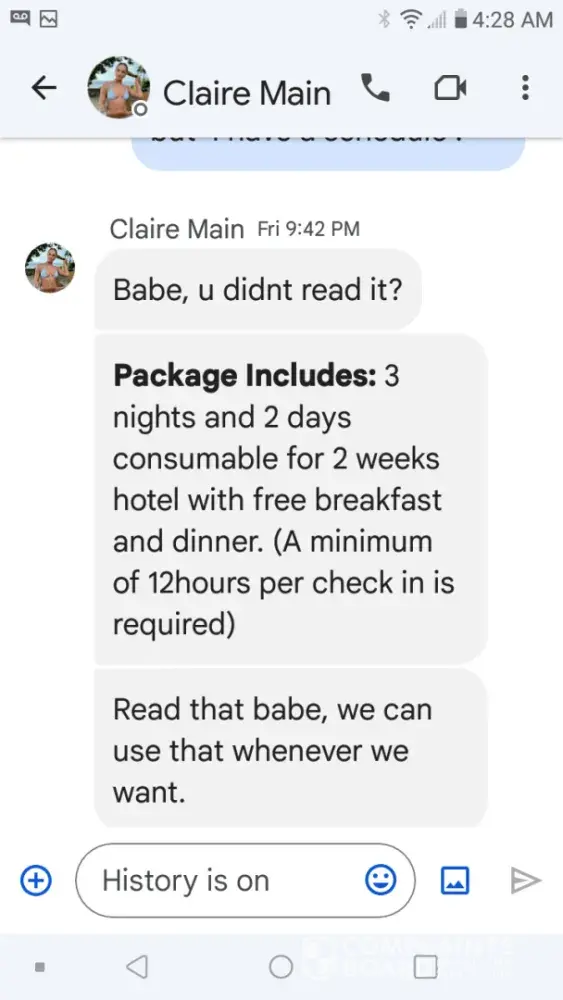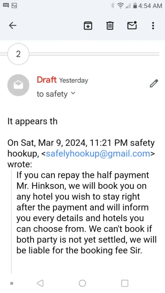 Me and Emily chatted a while more. I asked if we could meet she said yes but had to book a room through Admn. So sent money for room. Then they said me and Emily couldn't meet because of different membership levels cost an additional 400 to up grade to VIP 3 BEFORE we could meet. Emily said will help with $150. This at together networks.