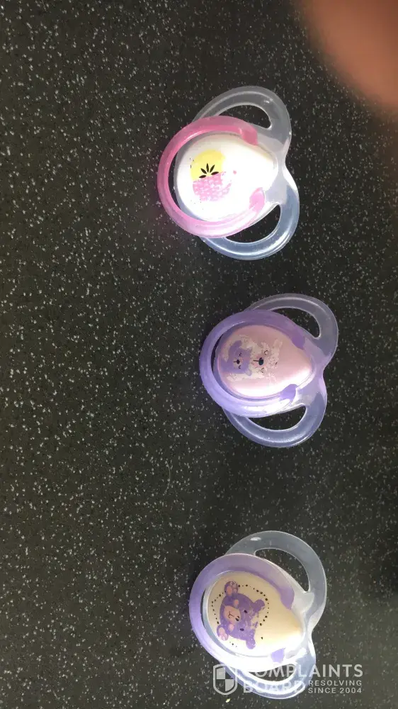 I brought these dummy's about four weeks ago we have never had a problem with any of these products and have always used them, today I noticed the inside of the clear bit looked wet so upon further inspection I noticed a massive spilt going through the top of this dummy ! I am horrified as if I had not seen this my daughter could have choked! For the money we as parents have to spend on these products I am disgusted to find this as there are only 4 weeks old and been used for 2 weeks I will be making a public announcement about the rubbish quality of this product if this complaint is not resolved