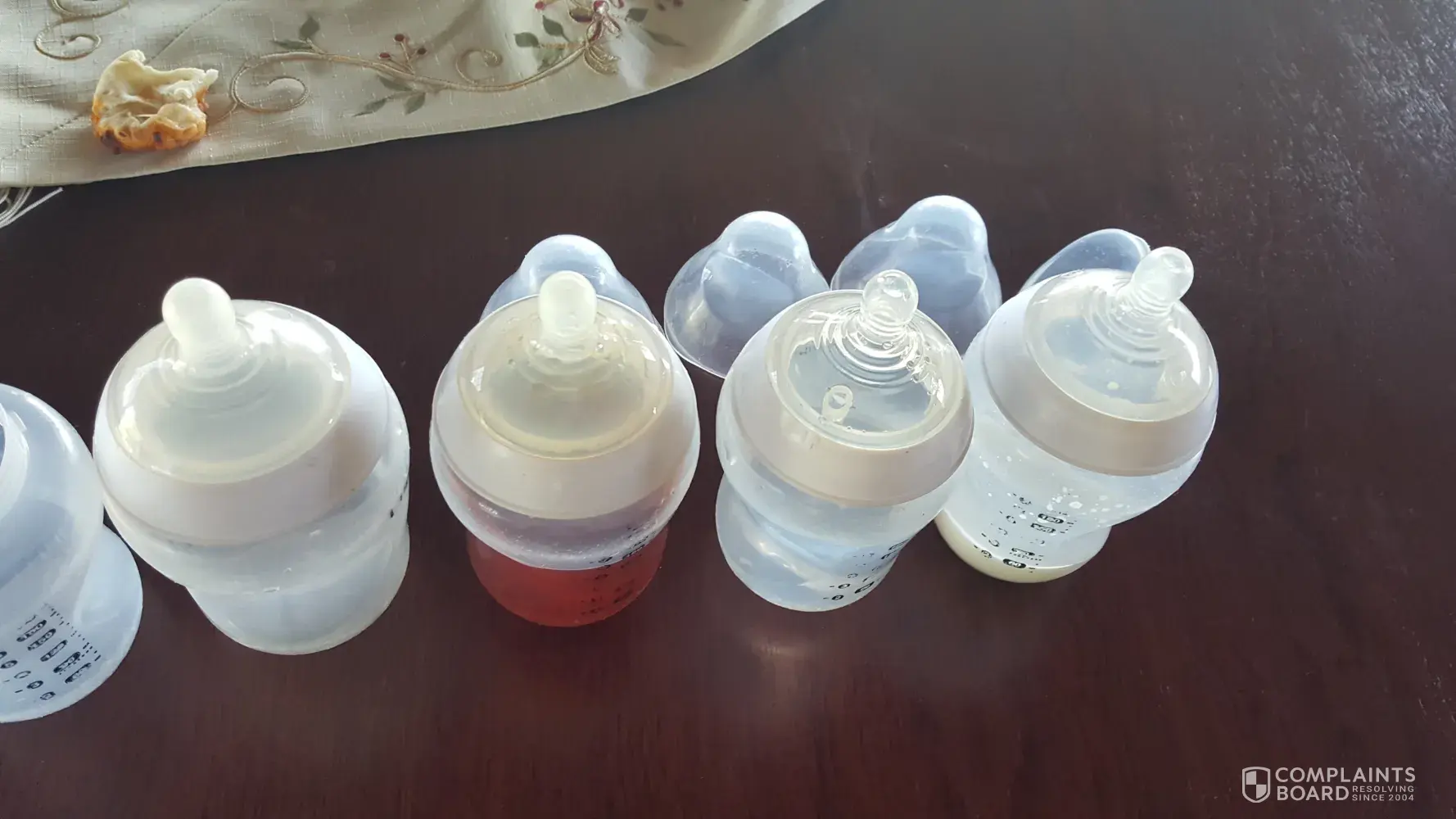 I purchased 6 plastic bottles for my newborn and the bottles leaking when I put the hot water and formula in them no matter how hard I screw the lid on. I'm also not happy that the bottles have discolored to a yellowish Brown colour. Due to this I have had to purchase another 6 glass bottles tommee tippee which has come at an extra cost. Im not happy with the fact that I have had to purchase glass bottles to replace the existing ones. My parents also purchased glass bottles to replace the ones they had due to the same issue. I believe once the hot water is dispensed into the bottle it shrinks and the teet once screwed on is not tight enough and should be looked into.