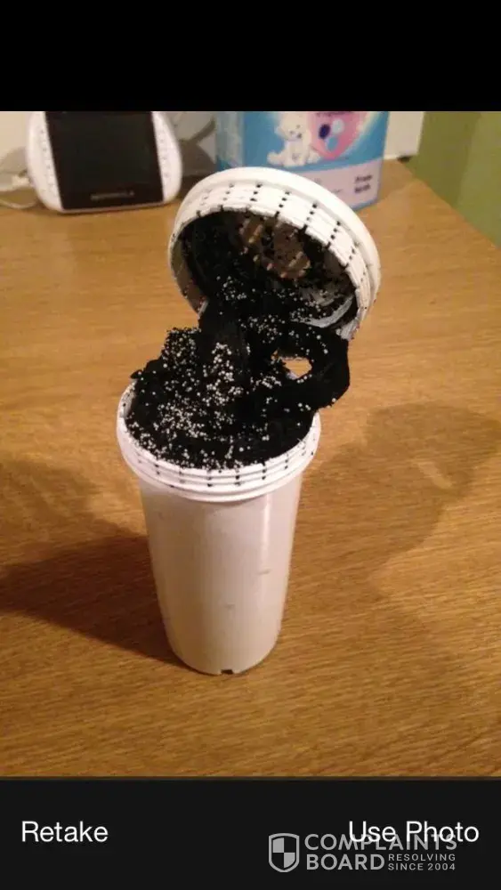 For the last 6 weeks my 4 month old baby as been poorly with infection after infection he's been on antibiotics most of them weeks resulting in him been back and forward to doctors and hospital last night when I was filling his perfect prep machine up with water I noticed the water was turning black I took the filter out and rinsed water through it the water coming out was black so I snapped the filter open to find a load of black and white stuff in the full filter I bought the filter brand new when my baby was born and the filter light on my machine did not even light up to show me any problem with the filter I am really upset with this situation and I am considering taking it to the hull daily mail papers