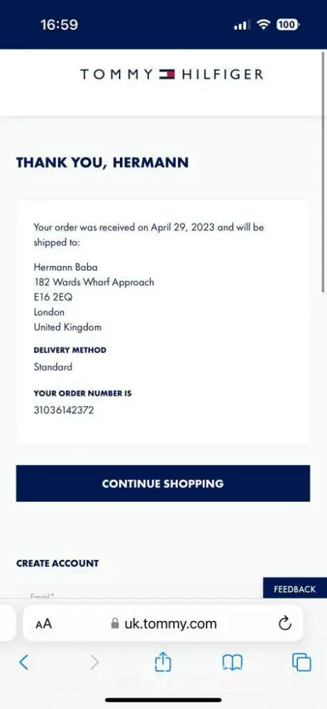 Email sent to Tommy Hilfiger: